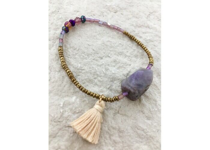 ガラスビーズ、真鍮ビーズ、アメシスト。
